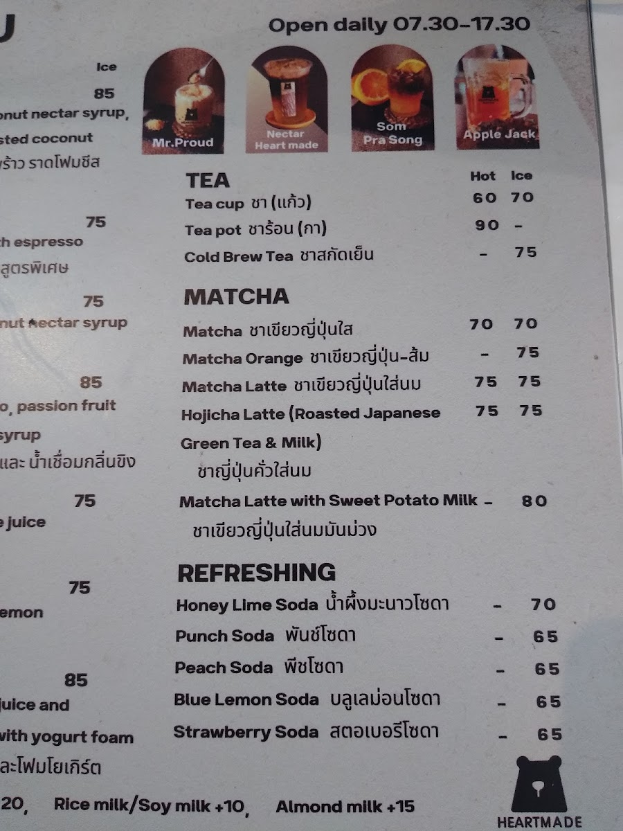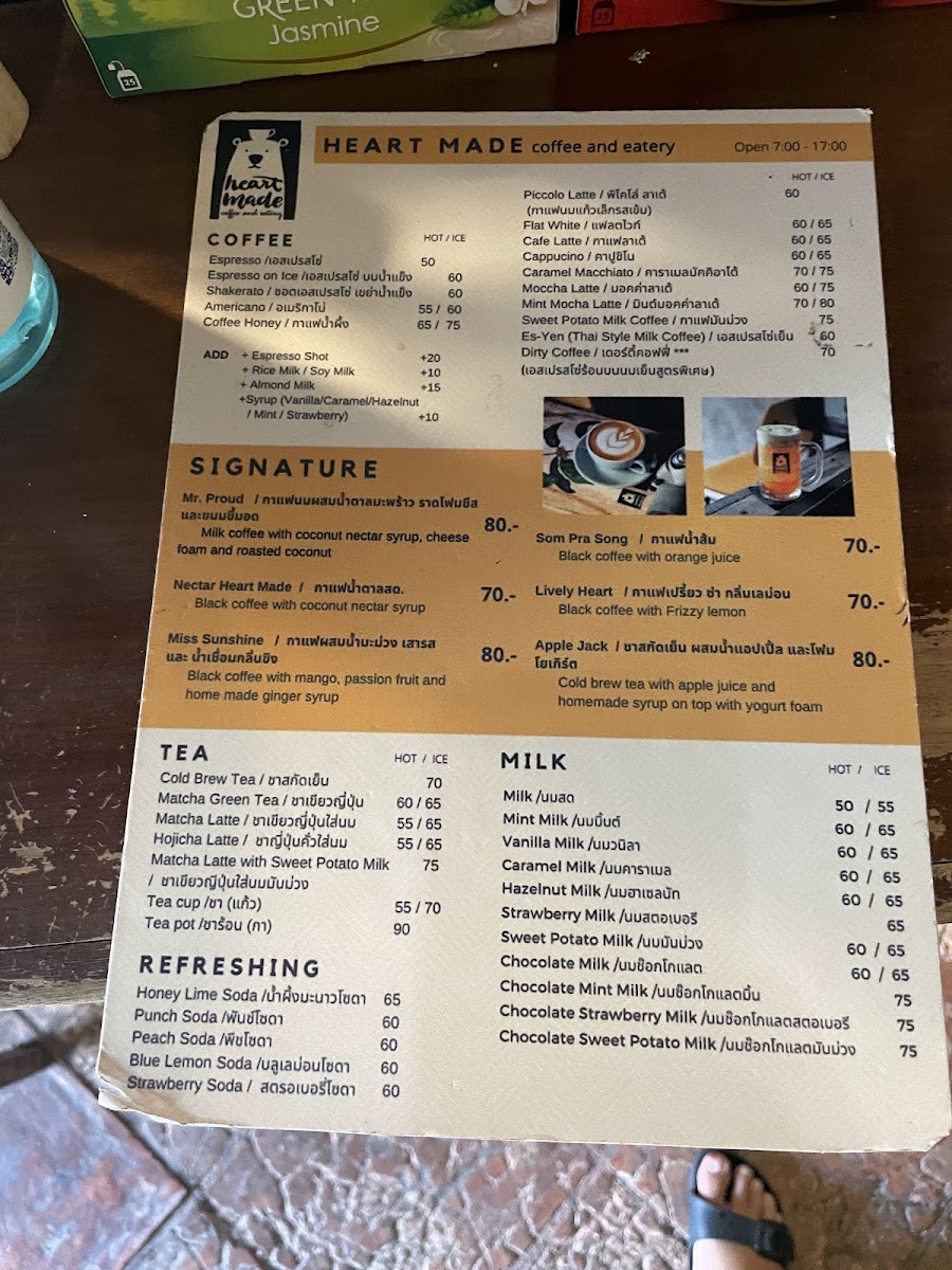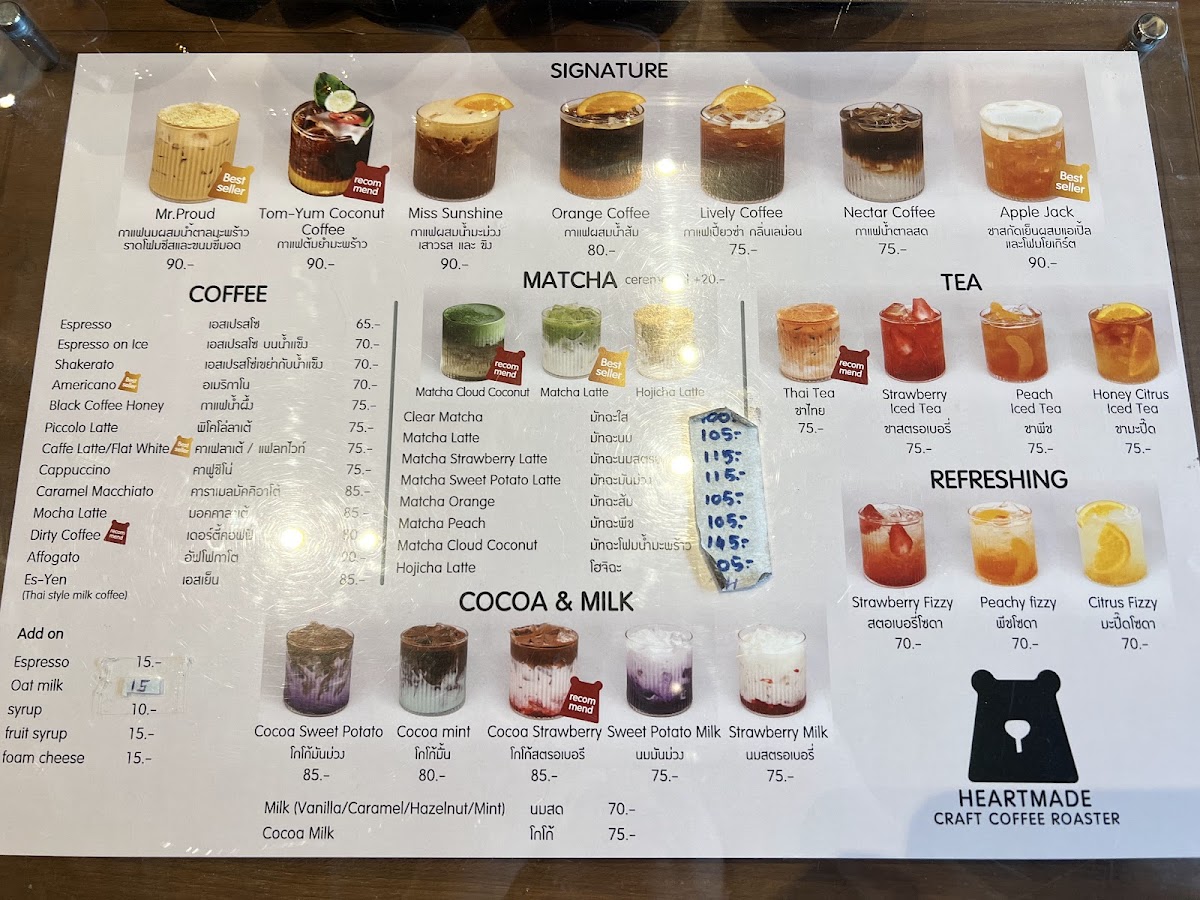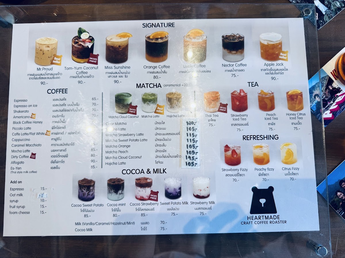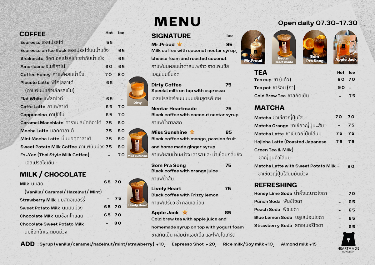 Heartmade Craft Coffee Roaster Menu